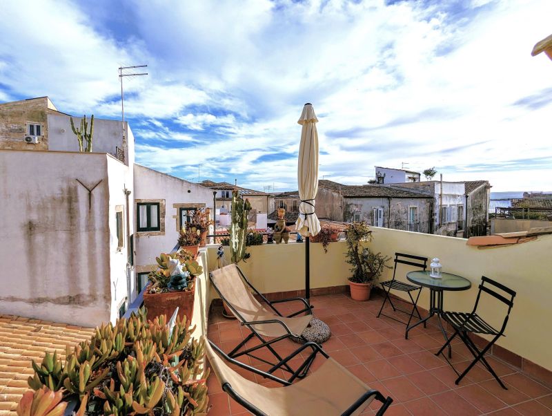 Our home holidays is located in the very heart of Ortigia Island, the old town of Syracuse and Unesco world heritage site, in a historical building of the ‘800, recently restored and returned to all its original splendour. It is located a few steps from the ocean and Aretusa Spring , half way between the Cathedral and Maniace Castle. It's a two-room apartment with the door on the first floor. It’s called "The Fairies" for the magic and enchanting vibe you can breathe in. It has a quirky layout on different levels. The apartment consists of a living room - kitchenette, bedroom, bathroom with shower unit and a large terrace. An old stone arch, a well and a niche of the ‘800 characterize the living room-kitchenette. A typical brick staircase leads to the bedroom, with a window on the typical courtyard. You will be delighted in feeling the fragrance of the magnificent orange tree in blossom. The furnishings is made with antique Sicilian furniture. A lovely wooden staircase (a bit steep.. looki at the picture!) leads to the terrace. From there you will enjoy a wonderful quaint view on the rooftops of Ortigia. It can be used as a sun bathing or you can open the parasol to refresh yourself. It has delicious armchairs, a table and reclining chairs. From here you can take a drink, anjoy a lunch or a romantic dinner with a pleasant evening breeze in summer time. It’s adorned with typical local plants. It can accommodate up to 2 people.
