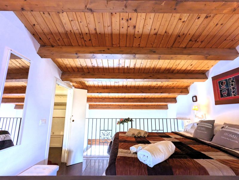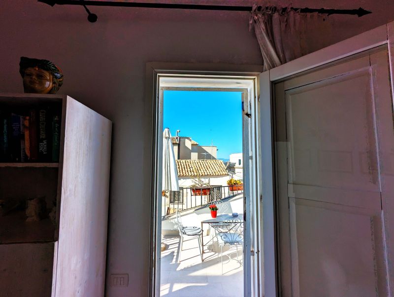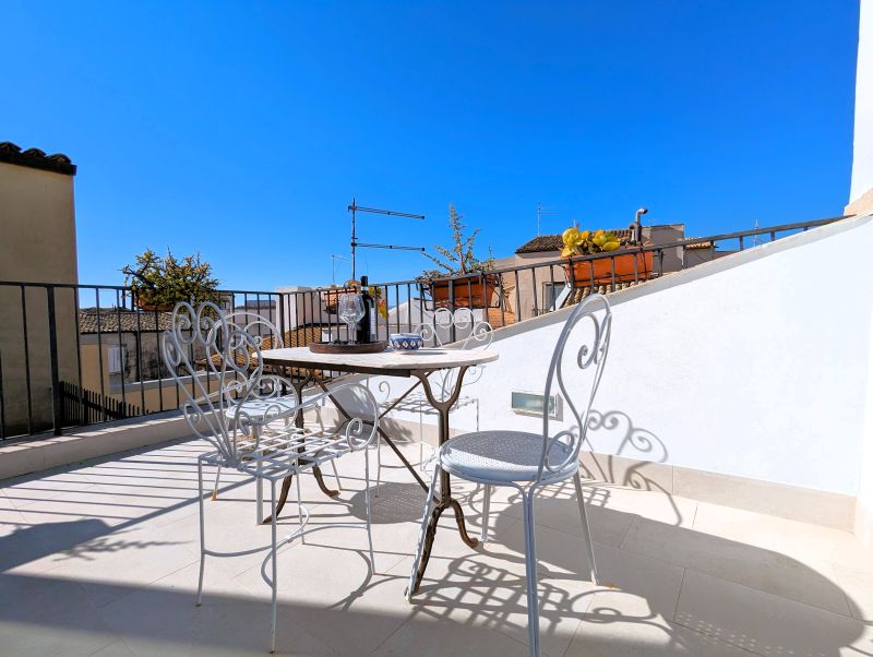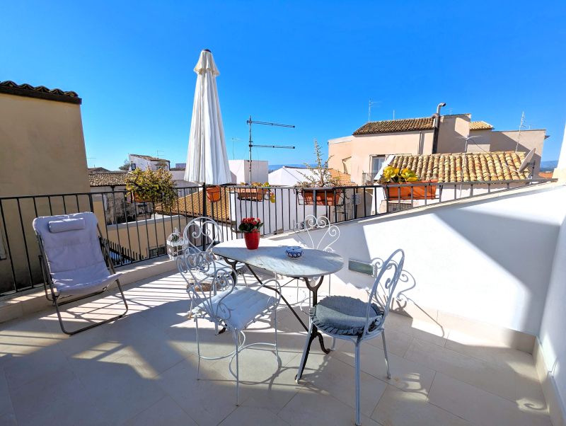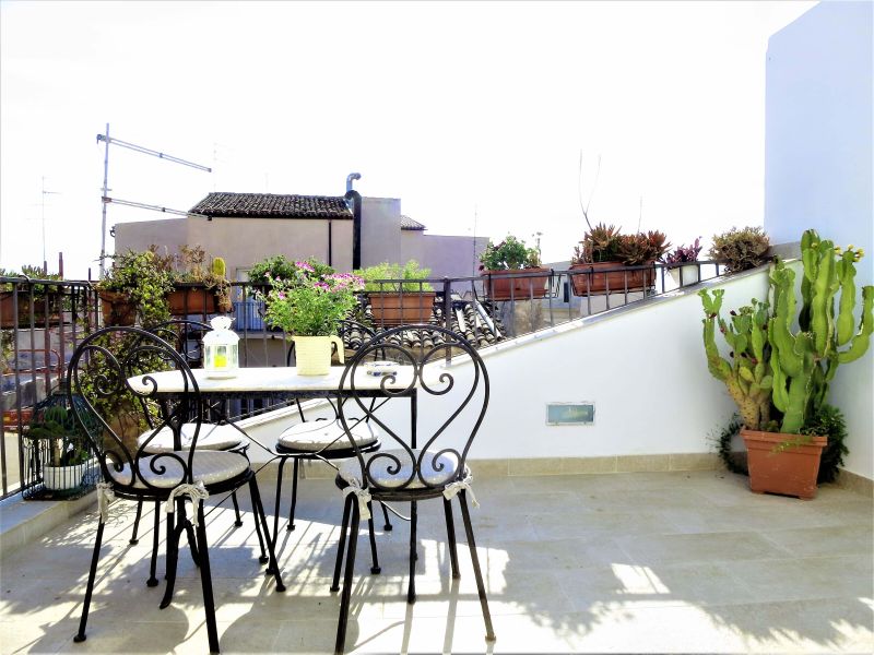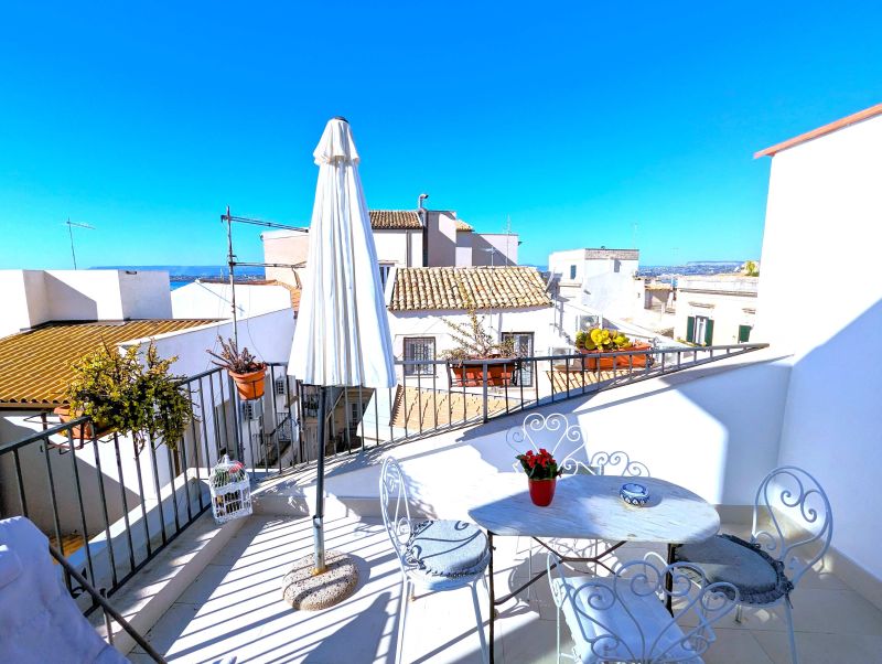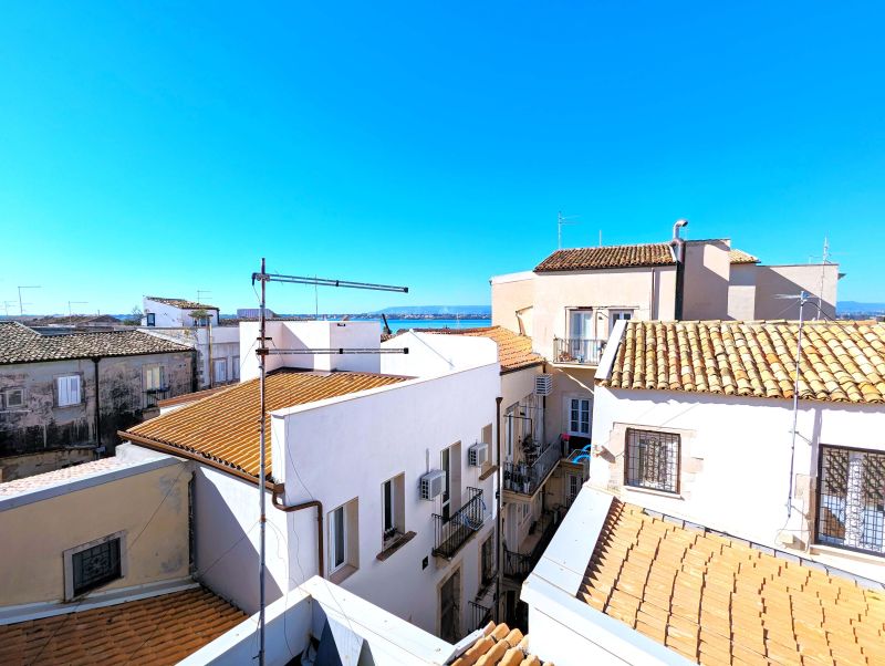 Our home holidays is located in the very heart of Ortigia Island, the old town of Syracuse and Unesco world heritage site, in historical building of the ‘800, recently restored and returned to all its original splendour. The location is impressive: a few steps from the sea and Aretusa Spring , half way between the Cathedral and Maniace Castle. It's a large and elegant loft apartment located on the third floor, with two bathrooms and private terrace. It's called "Miramare" because from its terrace you can enjoy views of blue sea and beautiful sunsets. The apartment consists of living area, sleeping area and terrace. The living area has two rooms: a large sitting room with sofa - bed en suite and a bright dining room with a typical Mediterranean fitted kitchenette, provided with another sofa-bed. From it, on the same level, you enter the terrace.can be used as a sun terrace and it has delicious armchairs, table and sunshade. From here you can also enjoy a drink, having lunch or enjoy a romantic dinner. It allows you to enjoy the pleasant evening breeze. It’s adorned with typical local plants. From the living-room, a typical wooden staircase leads to the bedroom en suite. The smallest bathroom upstairs, provided with shower unit as well, has slopping roof. It is suggested for families and couples.