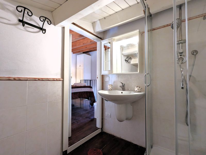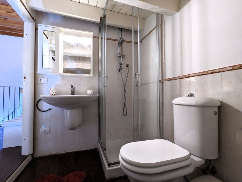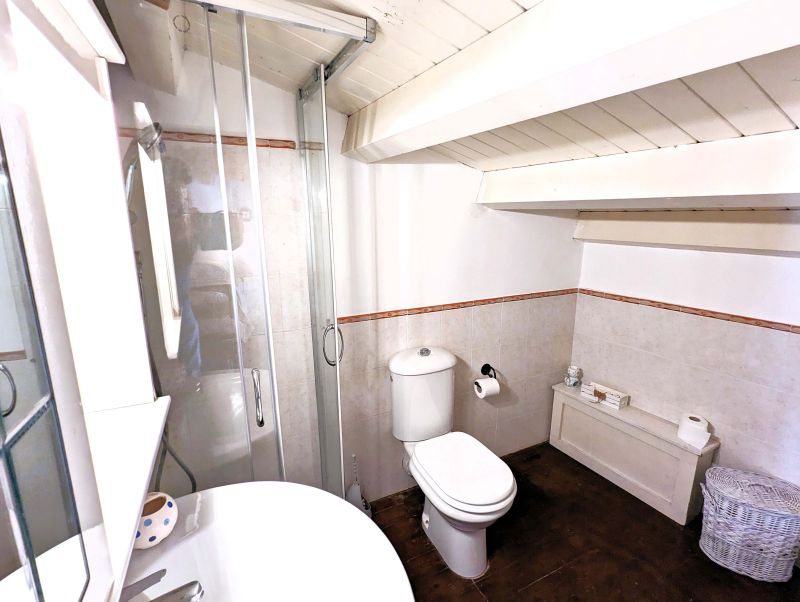 - bedroom and small bathroom with sloping roof in the loft -