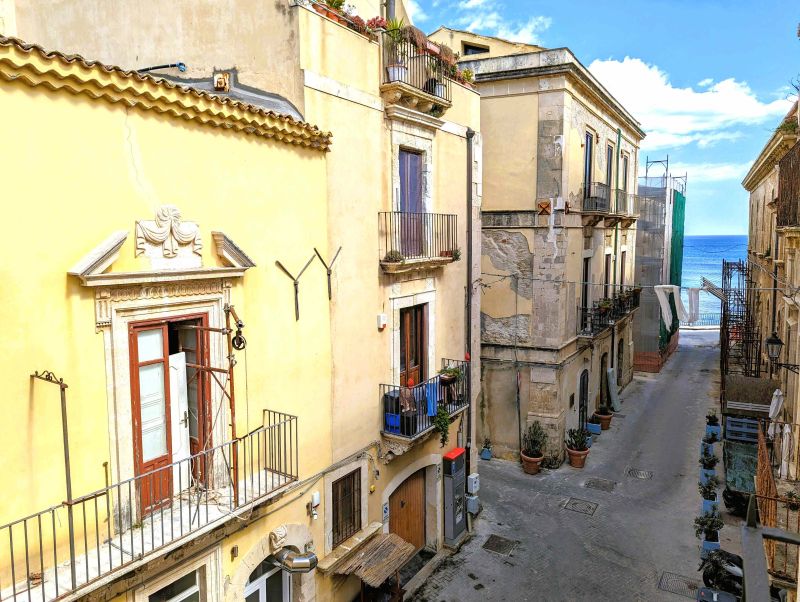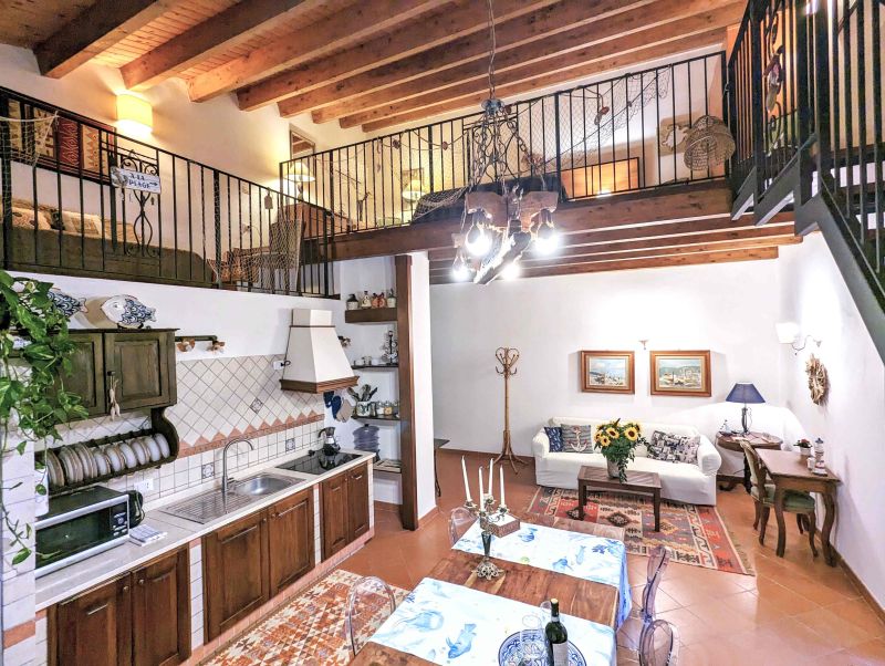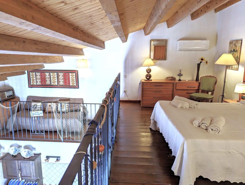 Our home holidays is located in the very heart of Ortigia Island, the old town of Syracuse and Unesco world heritage site, in historical building of the ‘800, recently restored and returned to all its original splendour. The location is impressive: a few steps from the sea and Aretusa Spring , half way between the Cathedral and Maniace Castle. It's called “Veliero” (Sailing Ship) for both the picturesque sea view from one of the two balconies, the sea is about 30 meters far away, and for its great position particularly airy and bright. It 's a large open space loft flat on the second floor, also accessible by a modern lift. Furnished with taste and attention to details, this flat is characterized by the elegant wooden ceilings and the terracotta floor. The living area is composed of a large living room with fitted kitchen (fully equipped), dining area and sofa-bed. An old chandelier lights the typical living room furnished with antiques. Ante-bathroom and bathroom complete the living area. A typical wooden and wrought iron staircase leads to the loft where you find the bedroom with double bed and a comfortable couch. It is suitable for 5 people. Ideal for couples, families and friends don't need any separate room.